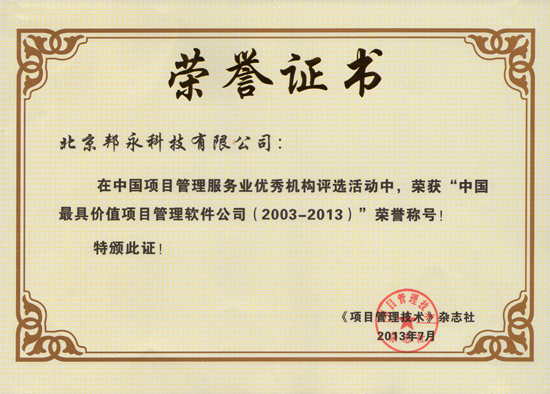 14、中國最具價值項目管理軟件企業(yè)獎(2003-2013)