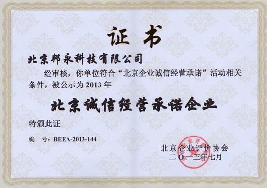 15、北京誠信經(jīng)營承諾企業(yè)證書