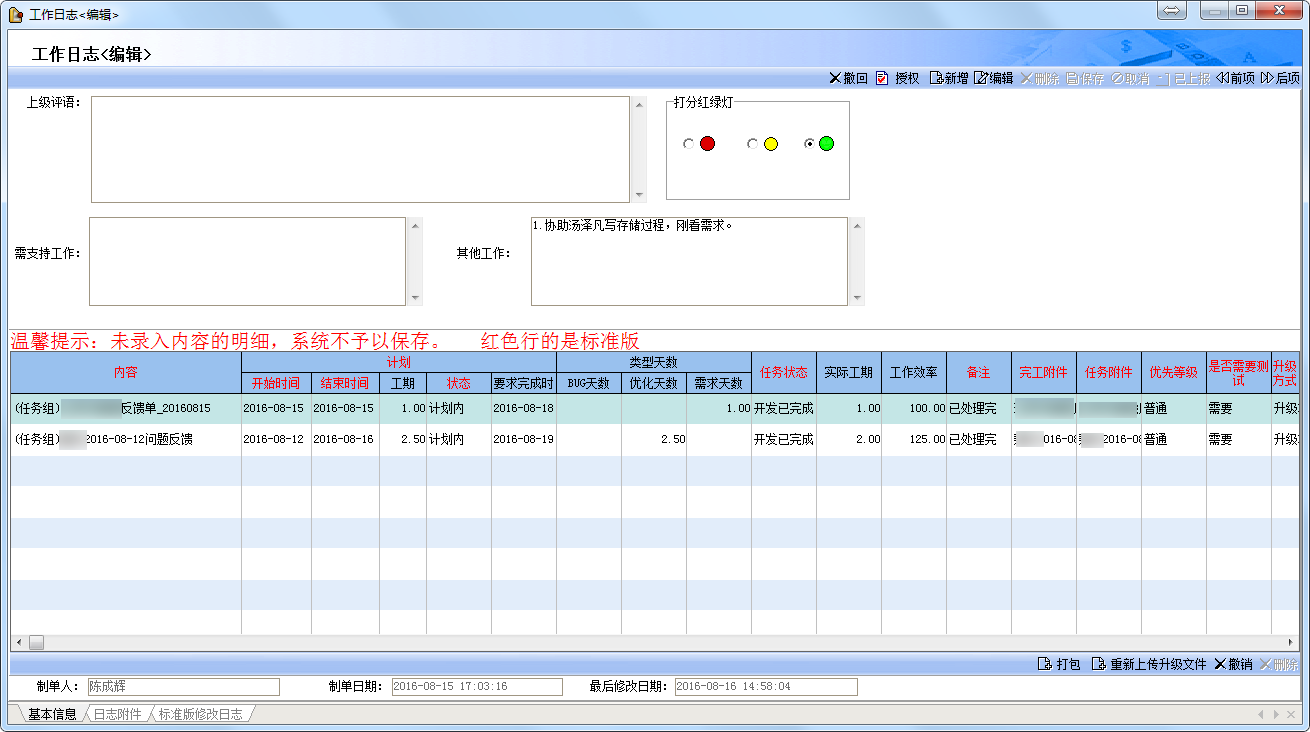 6)研發(fā)部根據(jù)員工的工作日志中標(biāo)準(zhǔn)產(chǎn)品修改記錄日志和更新方法,為后面的產(chǎn)品升級提供了升級日志和升級方式的數(shù)據(jù)基準(zhǔn)。