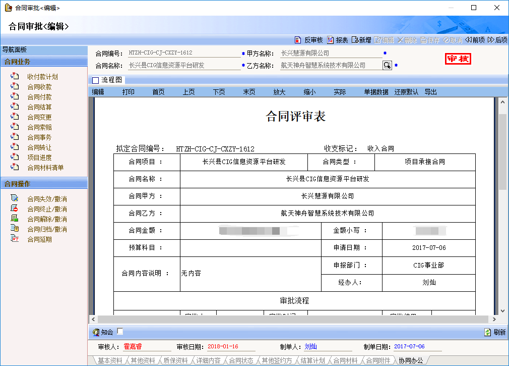 銷售合同、外協(xié)合同實(shí)現(xiàn)線上簽訂審批、進(jìn)度結(jié)算、合同變更、發(fā)票登記、收、付款管理。