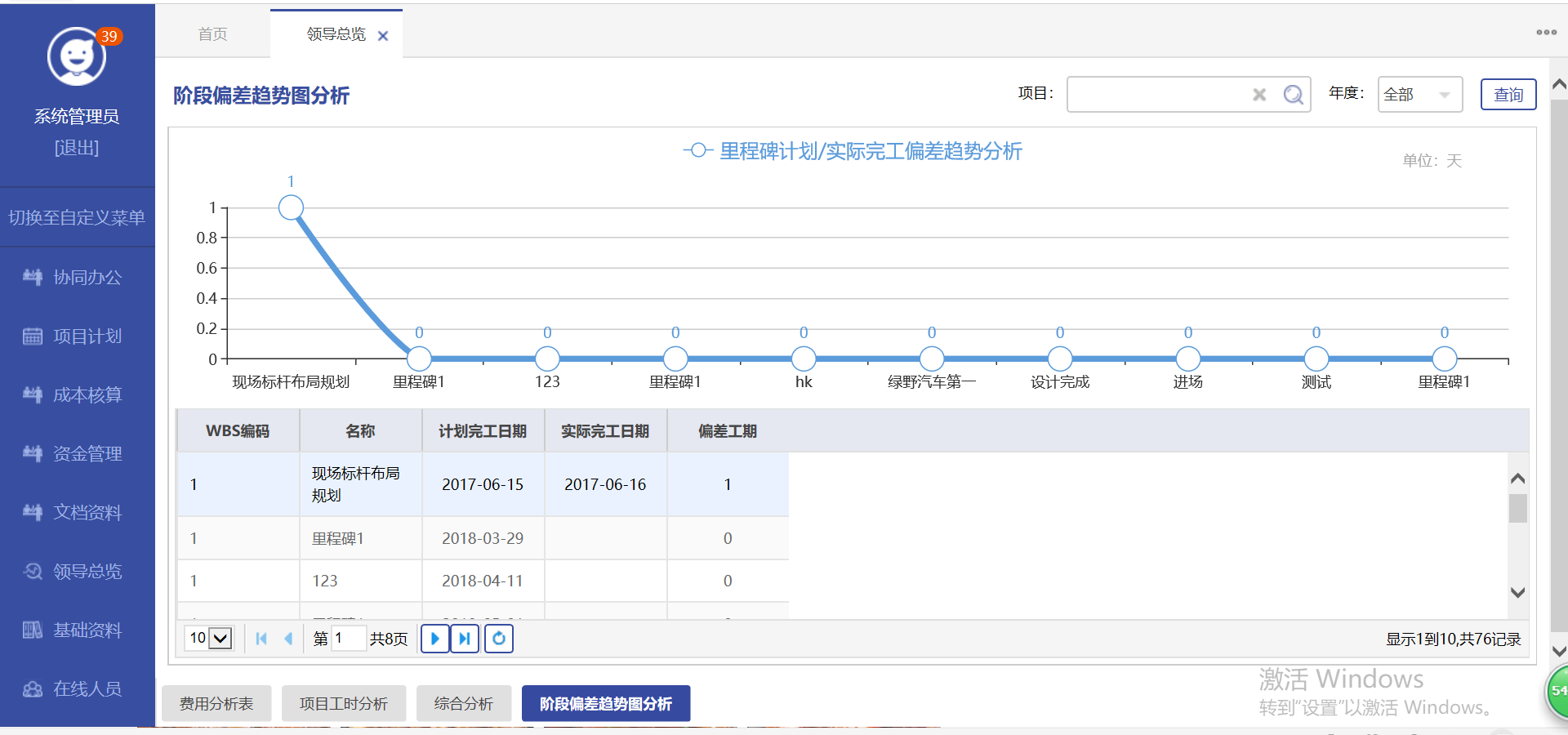 針對(duì)系統(tǒng)建設(shè)的計(jì)劃管理、進(jìn)度管理等模塊信息,對(duì)各項(xiàng)指標(biāo)進(jìn)行綜合統(tǒng)計(jì)分析,并結(jié)合各種圖表進(jìn)行綜合展示。以同比、環(huán)比、趨勢(shì)等分析方法實(shí)現(xiàn)計(jì)劃完成率、預(yù)警信息的統(tǒng)計(jì)分析,輔助各級(jí)領(lǐng)導(dǎo)決策。