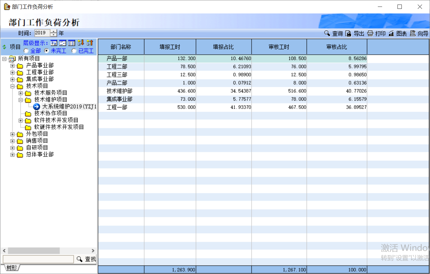 ? 按項(xiàng)目統(tǒng)計(jì)計(jì)劃完成工時(shí)和完成率;