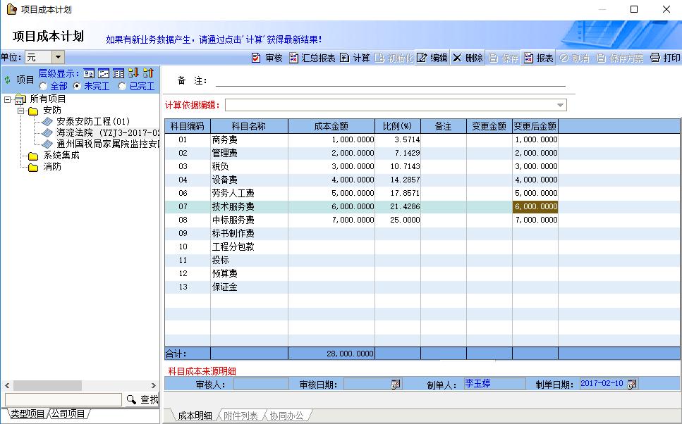 5.1建立成本預(yù)算編輯功能,錄入項目預(yù)算成本。