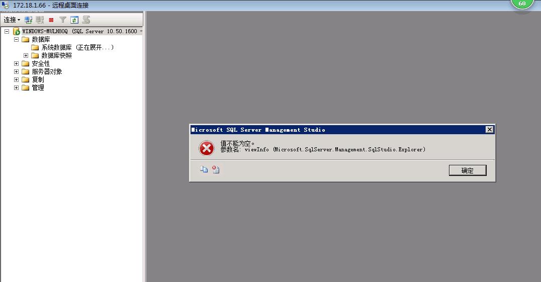 問:為什么打開數(shù)據(jù)庫,會報“值不能為空。參數(shù)名:viewInfo…………”,具體見下圖:
