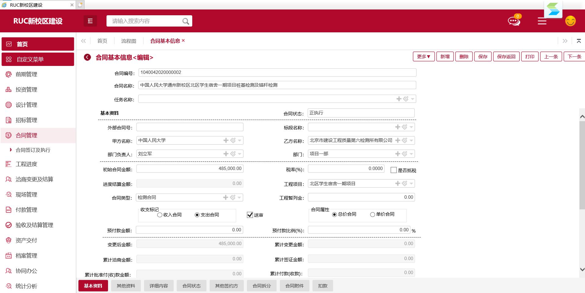 合同理要和工程q度、工E洽商、资金支付、案管理、资料提取等模块兌Q能方便记录和查询合同相兛_Ҏ(gu)行情况(如合同实施进度、合同付?gu)ƾ记录、合同篏计支付金额、合同尾ƄQ。系l记录合同金额和付款记录Q实现资金、合同执行与q度的信息关联。该部分要注意权限分配和|签的安全性问题?/p>