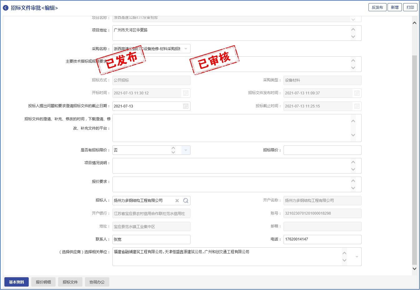 鎷涙爣鏂囦歡瀹℃壒鍙戝竷鍚庯紝璁″垝鍚堢害閮ㄥ湪姝ゆ煡鐪嬮渶鎷涙爣鐨勯噰璐」鍙婂悇渚涘簲鍟嗘姤浠鳳紝騫舵牴鎹緵搴斿晢紜瀹℃壒濉啓涓爣鍗曚綅銆傚彲絀塊忓埌紓嬪晢鎶ヤ環(huán)鐣岄潰銆傜敳鏂瑰湪姝ゆ煡鐪嬫嫑鏍囩殑鐩稿叧鎯呭喌錛屾牴鎹紑鏍囨椂闂村強渚涘簲鍟嗘槸鍚︿腑鏍囨洿鏂版嫑鏍囬」鐨勭姸鎬侊紝 騫舵牴鎹紑鏍囨椂闂存帶鍒朵緵搴斿晢鎶ヤ環(huán)鏄劇ず鏁板艱繕鏄?鍙楓?/p>