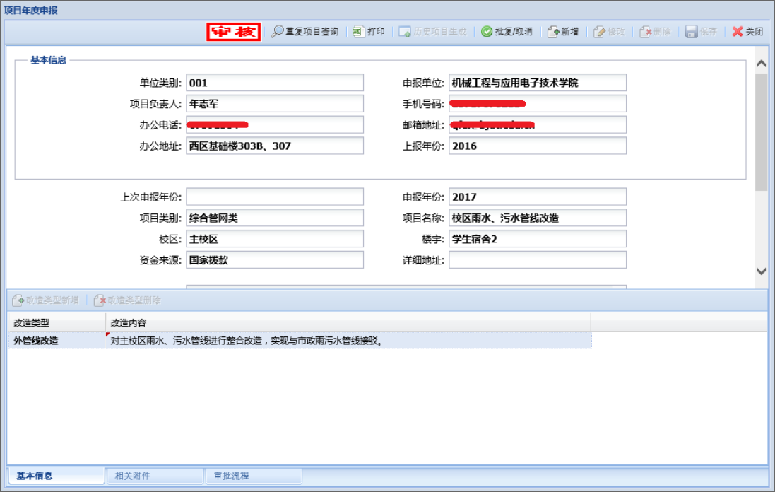 高校修繕工程管理是一項系統(tǒng)工程,包括項目申報、立項審批、招投標與施工管理、驗收結(jié)算、成果展示等多個環(huán)節(jié)。涉及到教學(xué)用房、學(xué)生公寓、體育設(shè)施、校內(nèi)道路和各種管線等公共設(shè)施。如何有效地管理這一龐大復(fù)雜的修繕信息資源、提高管理工作效率,已經(jīng)成為高校管理部門科學(xué)地規(guī)范其管理工作和提高服務(wù)水平的關(guān)鍵所在。