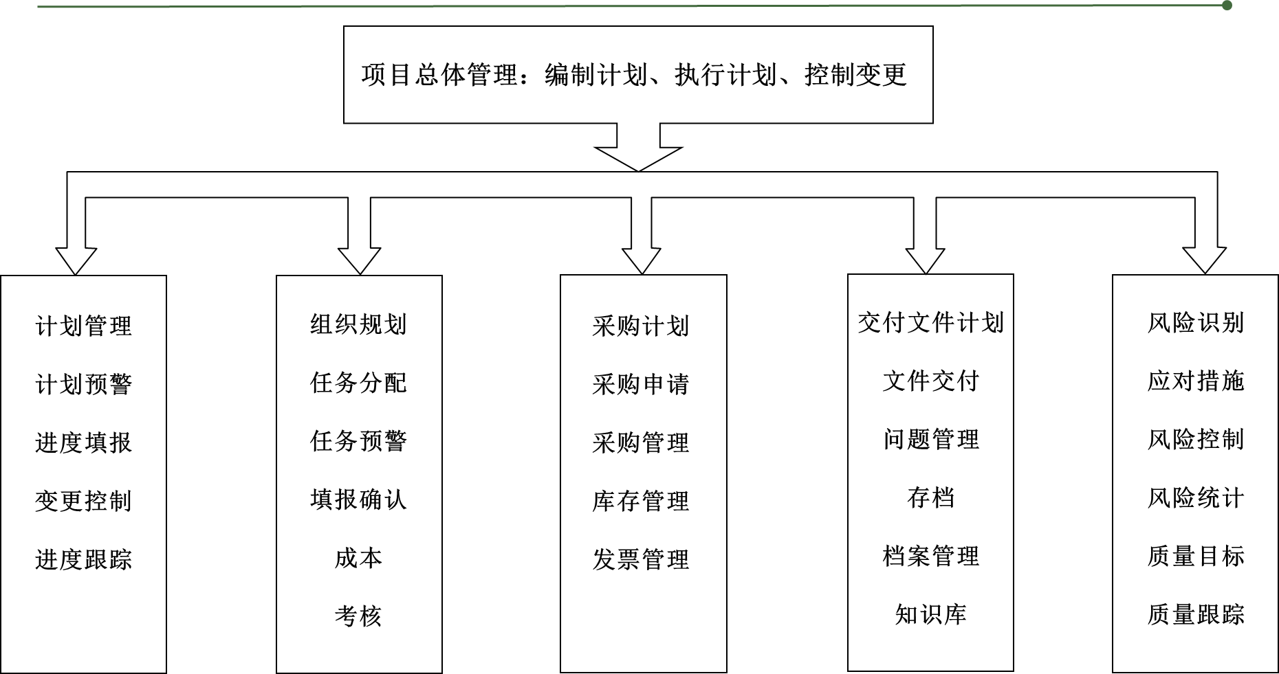 ? 系統(tǒng)建設(shè)后,需實(shí)現(xiàn)項(xiàng)目的全生命周期管理,實(shí)現(xiàn)客戶(hù)信息維護(hù)、合同發(fā)票、招投標(biāo)、項(xiàng)目外包、項(xiàng)目計(jì)劃、計(jì)劃拆分、計(jì)劃變更、計(jì)劃達(dá)成、資源、文檔、預(yù)算、成本、分析決策等方面的全過(guò)程管理,詳細(xì)功能圖如下:
