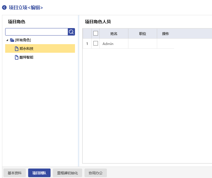 ? 包含項(xiàng)目的創(chuàng)建及審批,創(chuàng)建項(xiàng)目時(shí)除填寫(xiě)相關(guān)信息外,還可以上傳相關(guān)文檔、定義項(xiàng)目團(tuán)隊(duì)、創(chuàng)建里程碑計(jì)劃。