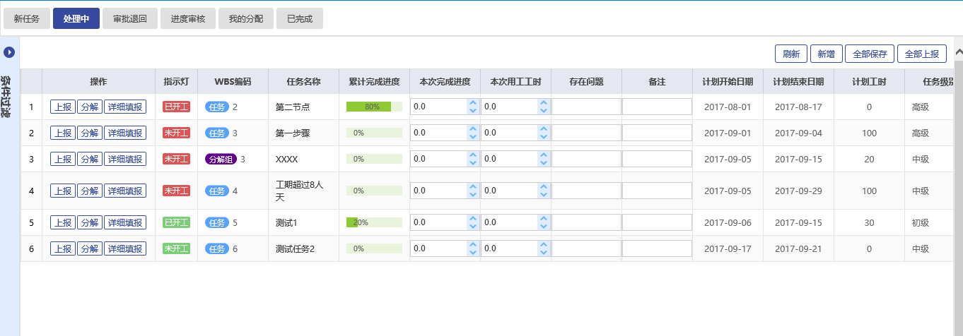 項(xiàng)目創(chuàng)建并通過(guò)審批后,就可以進(jìn)行任務(wù)分配了,同一個(gè)任務(wù)可以分配給一個(gè)人或多個(gè)人。分配任務(wù)時(shí)須指定任務(wù)計(jì)劃開(kāi)始和結(jié)束日期。任務(wù)可以是小時(shí),可以是工作日,每個(gè)任務(wù)的單位可以不一樣,如工時(shí)、百分比、個(gè)、件等。任務(wù)分配時(shí),任務(wù)接收人員可以選擇接受,也可以輸入理由后選擇拒絕,提醒管理者重新進(jìn)行任務(wù)分配。任務(wù)接收人對(duì)于接收的任務(wù),還可以進(jìn)行下級(jí)的任務(wù)分配。