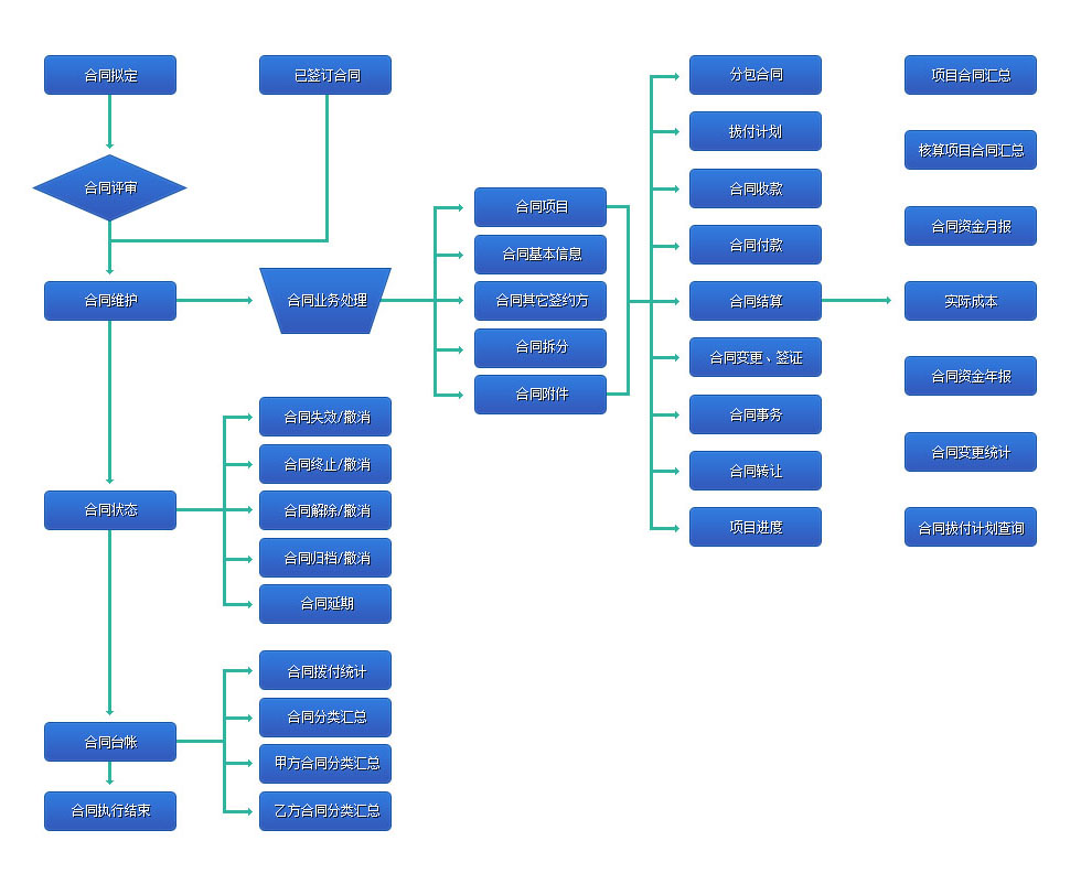 合同及合同管理是企業(yè)經(jīng)營成敗的關鍵因素,尤其是在甲方投資工程項目管理企業(yè),合同管理更是企業(yè)管理中的重中之重,直接關系到項目的成本管控和企業(yè)層面上的資金監(jiān)管。邦永公司憑借多年在工程項目企業(yè)的潛心專研以及豐富的軟件開發(fā)、實施經(jīng)驗,研發(fā)了貼合甲方投資型企業(yè)管理要求的合同管理軟件。