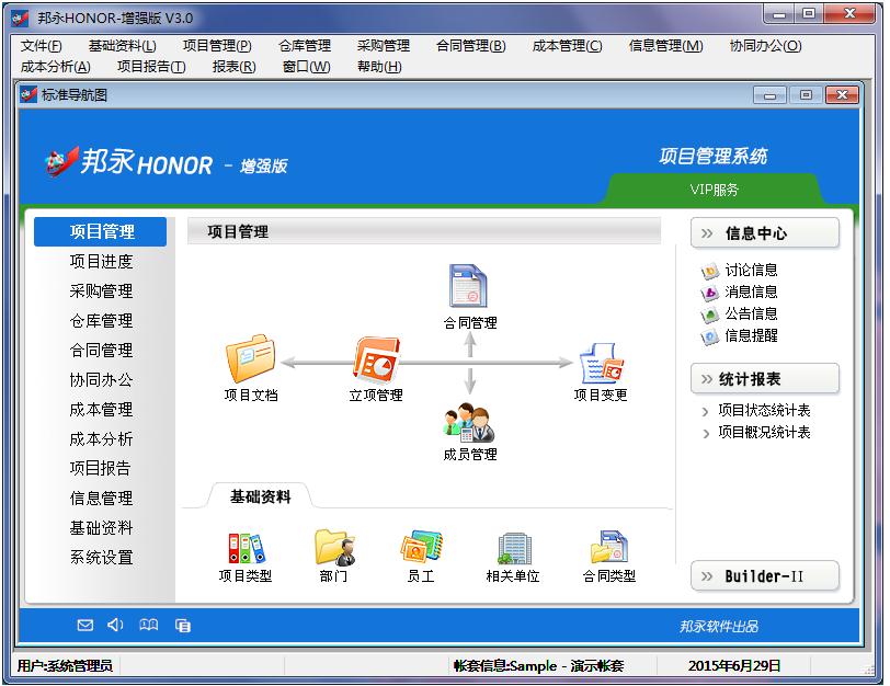邦永HONOR項(xiàng)目管理軟件是邦永公司基于國(guó)內(nèi)外先進(jìn)的項(xiàng)目管理理念,針對(duì)中小項(xiàng)目型企業(yè)機(jī)構(gòu)簡(jiǎn)單、項(xiàng)目多且規(guī)模小和管理靈活等特點(diǎn)研發(fā)的一款軟件。該款軟件將項(xiàng)目管理、協(xié)同辦公、成本管理、合同管理、物資管理、成本分析和項(xiàng)目報(bào)告等內(nèi)容集成于一體,以項(xiàng)目進(jìn)度為線索、成本控制為核心,結(jié)合多維度的統(tǒng)計(jì)分析,有效提高企業(yè)項(xiàng)目管理水平,滿足中小型企業(yè)項(xiàng)目管理未來(lái)的發(fā)展要求。