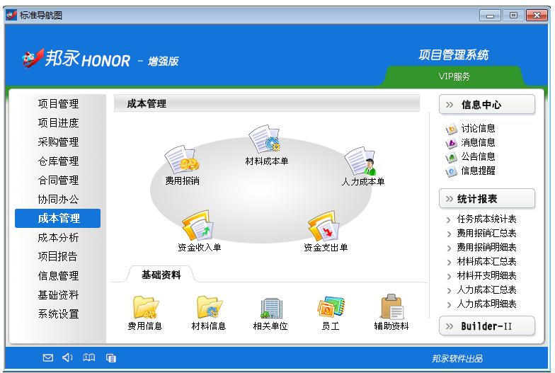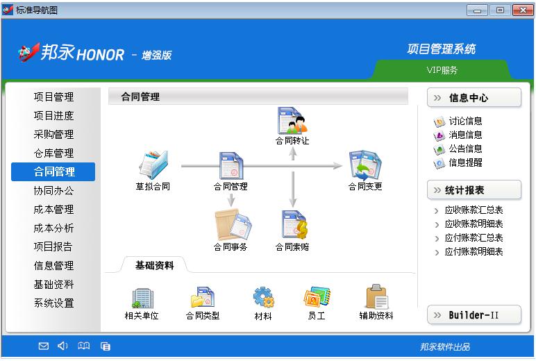 邦永HONOR項(xiàng)目管理軟件是建立于信息化管理基礎(chǔ)上的,它能夠?qū)ζ髽I(yè)整個(gè)業(yè)務(wù)流程進(jìn)行優(yōu)化管理,進(jìn)行事先計(jì)劃、事中控制、事后追蹤,并最終實(shí)現(xiàn)降低成本、提高效率、擴(kuò)大效益的目標(biāo),可以幫助企業(yè)改良原有的管理模式與業(yè)務(wù)流程,是對(duì)企業(yè)所有的資源與活動(dòng)進(jìn)行優(yōu)化配置與效率管理的最佳解決方案。該款軟件包含項(xiàng)目管理、協(xié)同辦公、成本管理、合同管理、物資管理、成本分析、項(xiàng)目報(bào)告、基礎(chǔ)資料、信息管理、Builder工具等子系統(tǒng),特別適用于建筑施工、弱電/集成、安防/消防、智能建筑、節(jié)能環(huán)保、園林綠化、設(shè)備安裝、裝飾幕墻、電力/通信、水利工程、監(jiān)理行業(yè)、科研項(xiàng)目等行業(yè)企業(yè)。