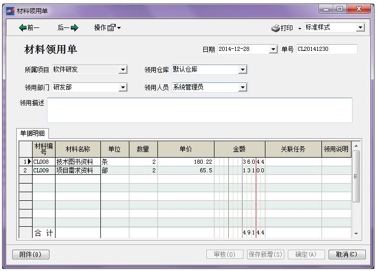 (1)按項(xiàng)目或任務(wù)查詢累計(jì)使用的詳細(xì)費(fèi)用、詳細(xì)材料數(shù)量金額、各自的人工費(fèi);