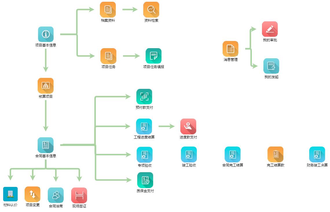 其中Q新建项目主要管理:目基本信息、项目案资料、项目计划进度、项目实际进度填报、合同基本信息、材料认仗项目变?、合同洽商、现场签证、预付款支付、工E进度结、进度款支付、专w收、竣工验收、合同完工结、完工结款支付、胦务竣工决、质保金支付?/p>