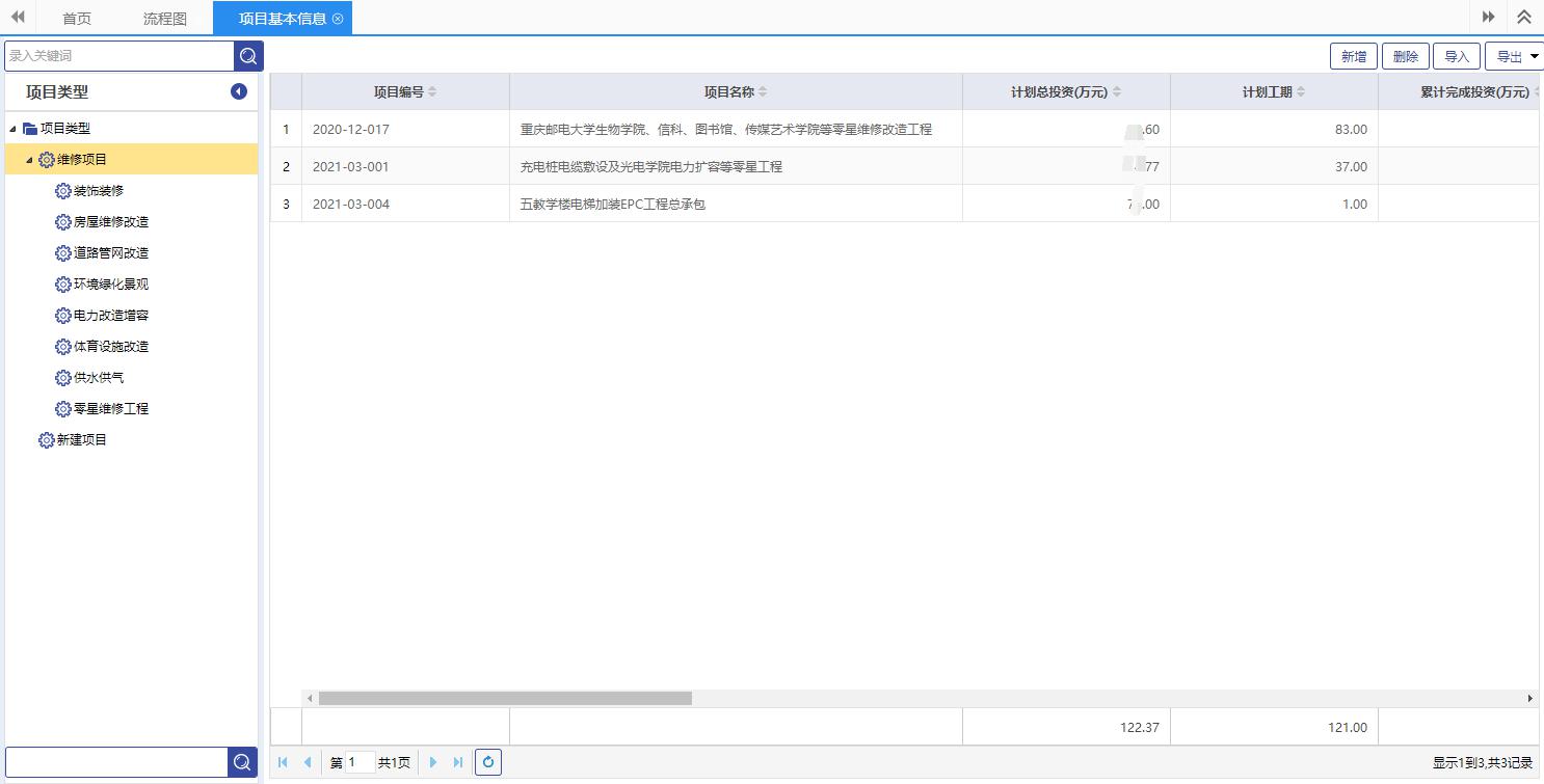 Ҏ(gu)重邮基徏处的M规划Q在pȝ中主要管理二c项目:新徏目、维修项目?/p>